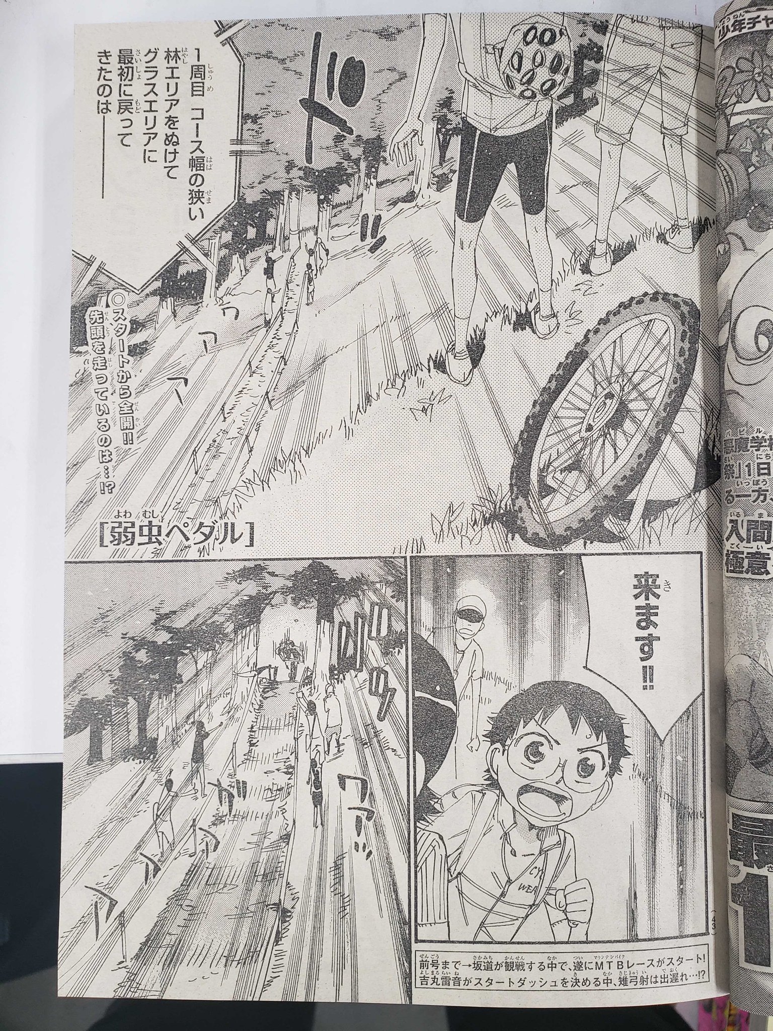 週刊少年チャンピオン編集部 Twitterren 弱虫ペダルmtb編 本日10 3日 木 は週刊少年チャンピオン44号の発売日です 甲高いホイッスルと共に全員全開スタート切ったmtbレース スタートを制し ホールショット を決めたのは吉丸雷音 一方 雉弓射は少し出遅れて
